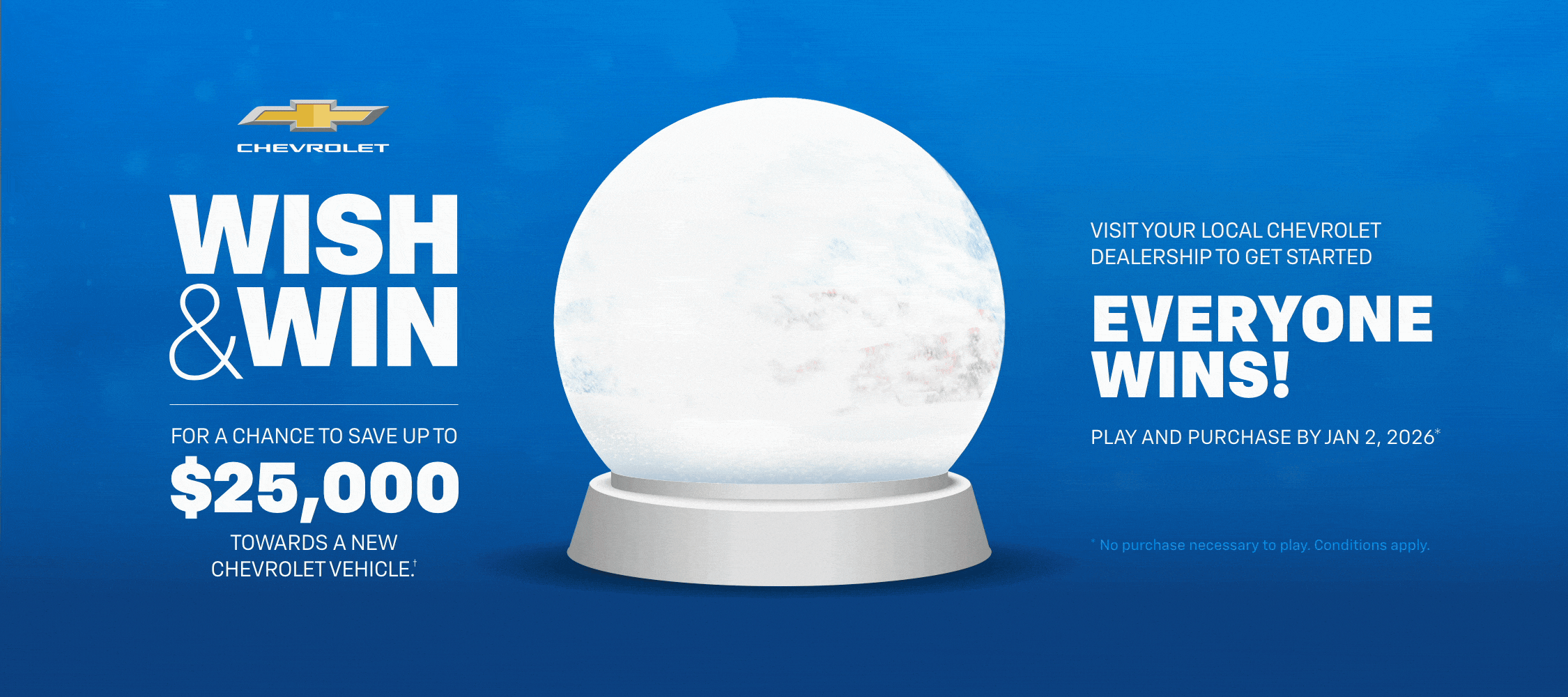 Play Wish & Win and you could save up to $25,000 on a brand-new Chevy.